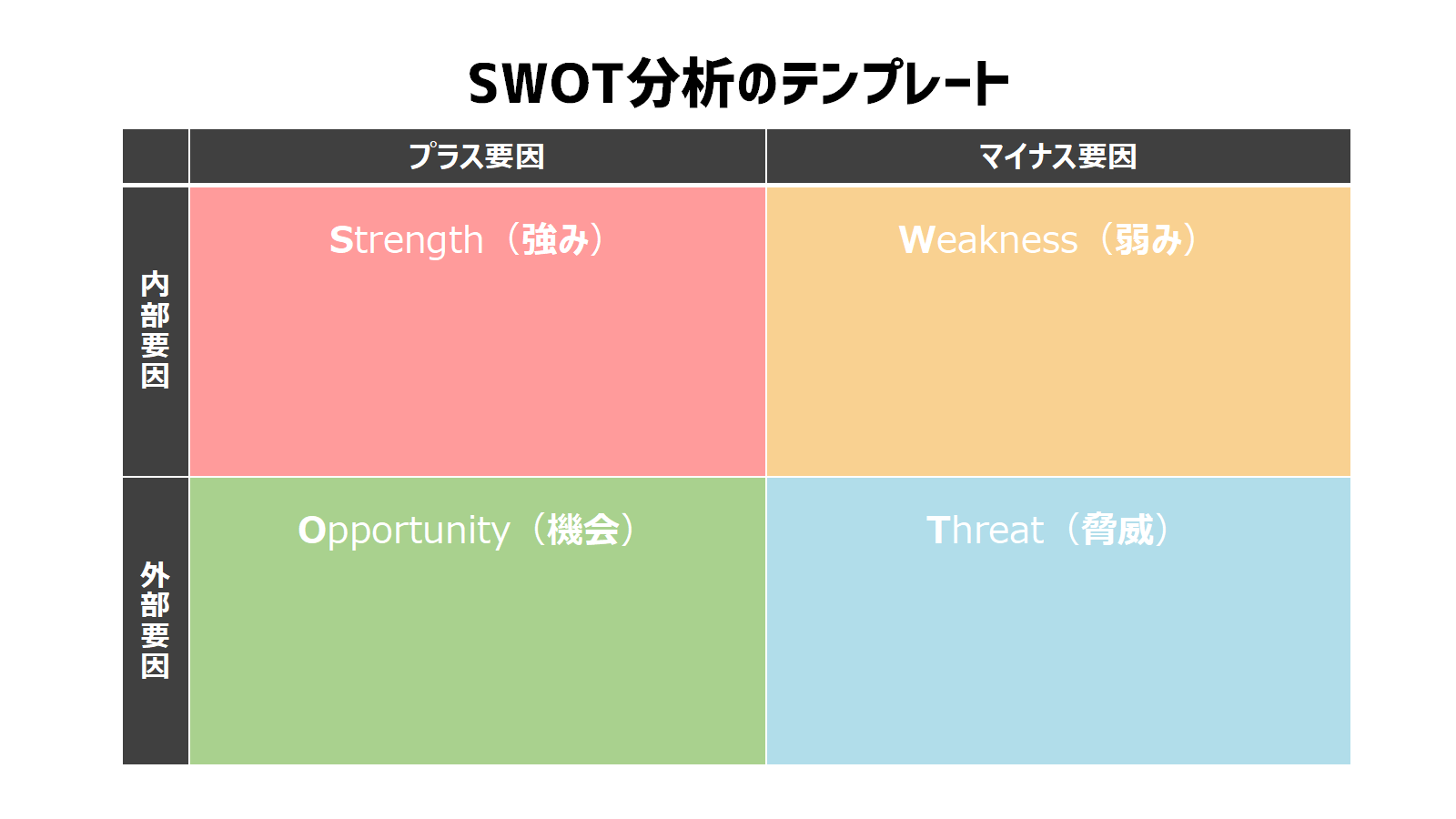 SWOT分析には上のようなテンプレートを使います。